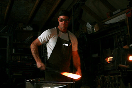 Student welding on a nearly complete sculptural bike rack. The Forging Leadership Seminar is a five day workshop with students from College Excel - www.collegeexcel.com - during which we work together to build a group project. Students discuss and practice basic leadership skills like communication, collaboration, attention to detail, cooperation, and commitment to follow-through in addition to learning basic blacksmithing and metal fabrication.